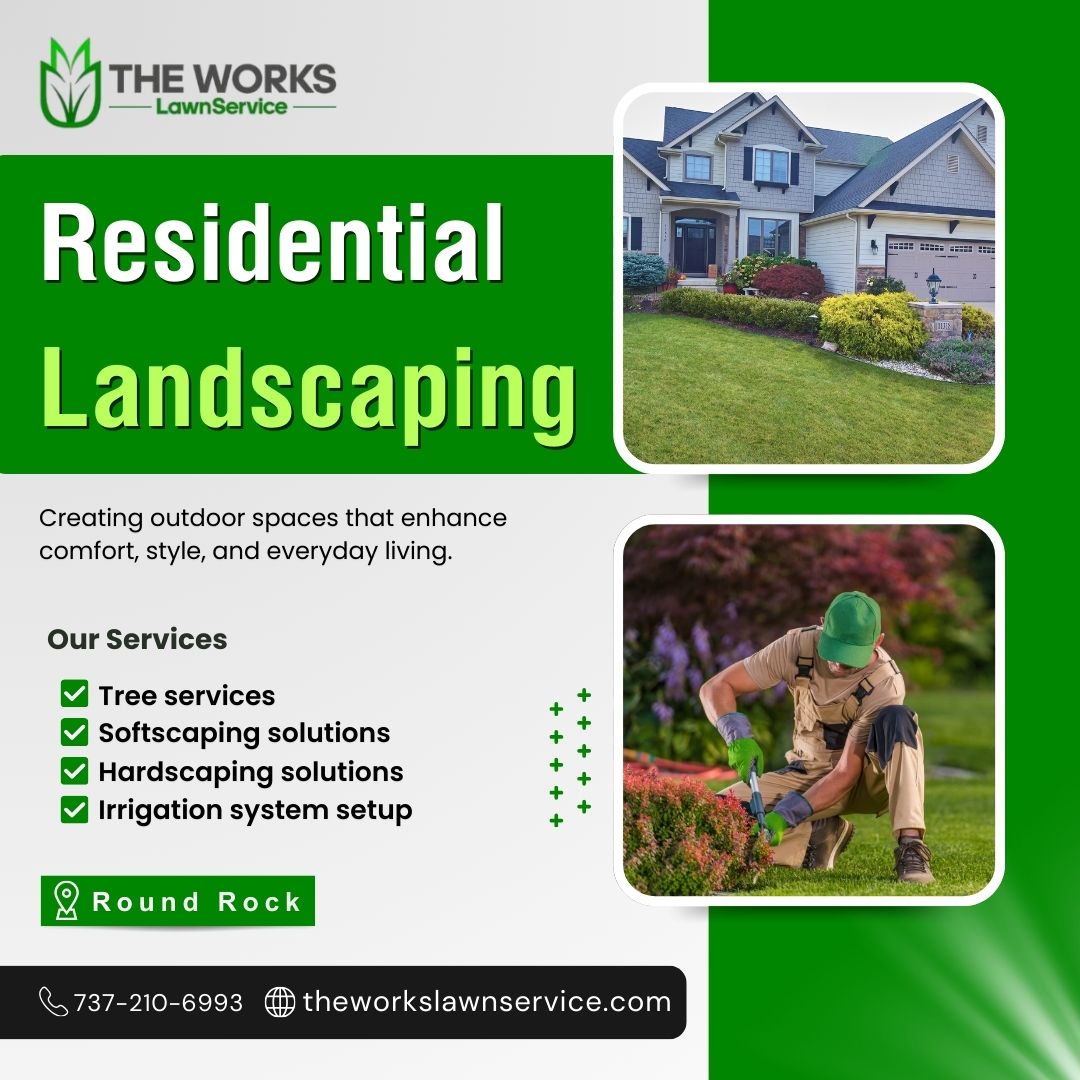 Every home deserves an inviting outdoor space that reflects its owner's style and encourages relaxation and a connection with nature. The Works Lawn Service offers expert residential landscaping in round rock, creating lawns and gardens that enhance your lifestyle and add lasting charm. Contact us today to transform your outdoor space.